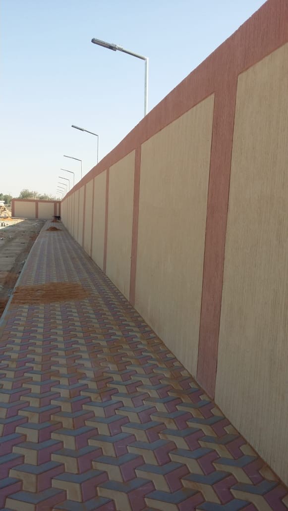 انشاء المبنى الادارى ، الاسوار ، مواقف السيارات ، بوابات الدخول والخروج